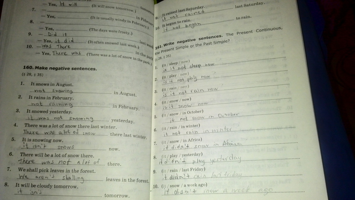 does not rain 3 It did not snow 4 there was not a lot 5 It isn’t snowing 6