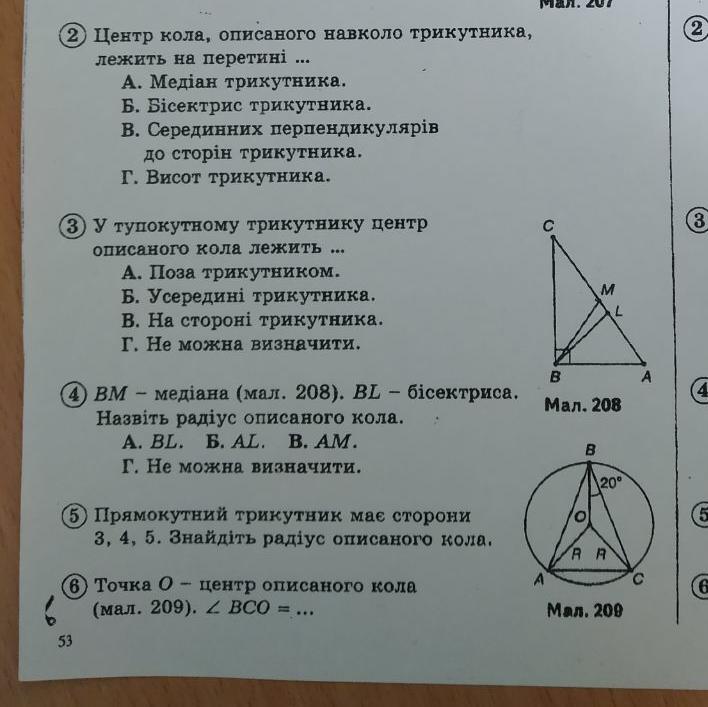 BM - медіана (мал.208) BL - бісектриса. Назвіть радіус описаного кола