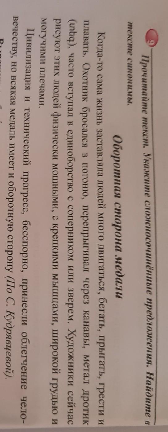 сложносочиненные предложения : Когда то жизнь заставляла людей много двигаться , бегать, прыгать , грести и плавать . Художники сейчас рисуют этих людей физически мощными, с крепкими мышцами, широкой грудью и могучими плечами . Цивилизация и технический прогресс, бесспорно, принесли облегчение человечеству , но всякая медаль имеет и оборотную сторону .