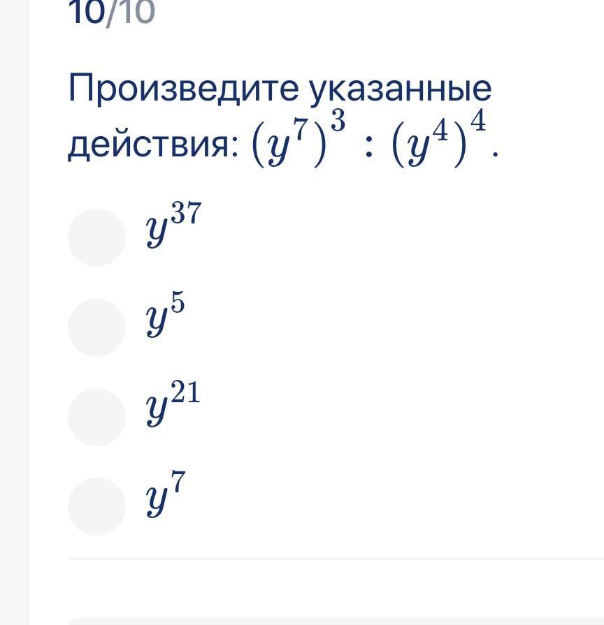 (y⁷)³ : (y⁴)⁴ = y²¹ : y¹⁶ = y⁵