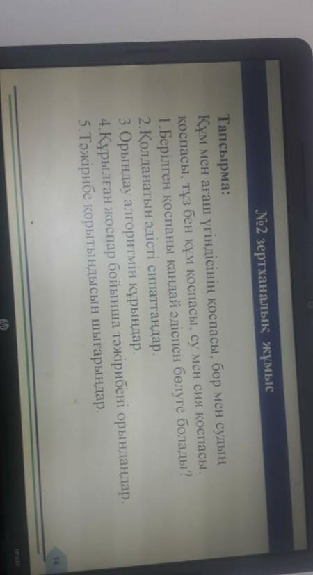 кұм мен ағашқа су құйып , құм астына тұнады ағаш бетінде қалқып шығады