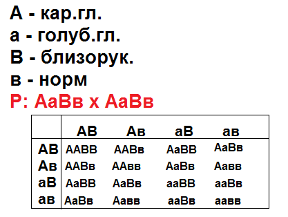 Единственный ребенок близоруких кареглазых родителей имеет голубые глаза и нормальное зрение. Определить генотип всех трех членов семьи. рождение каких детей можно ожидать в этой семье?
