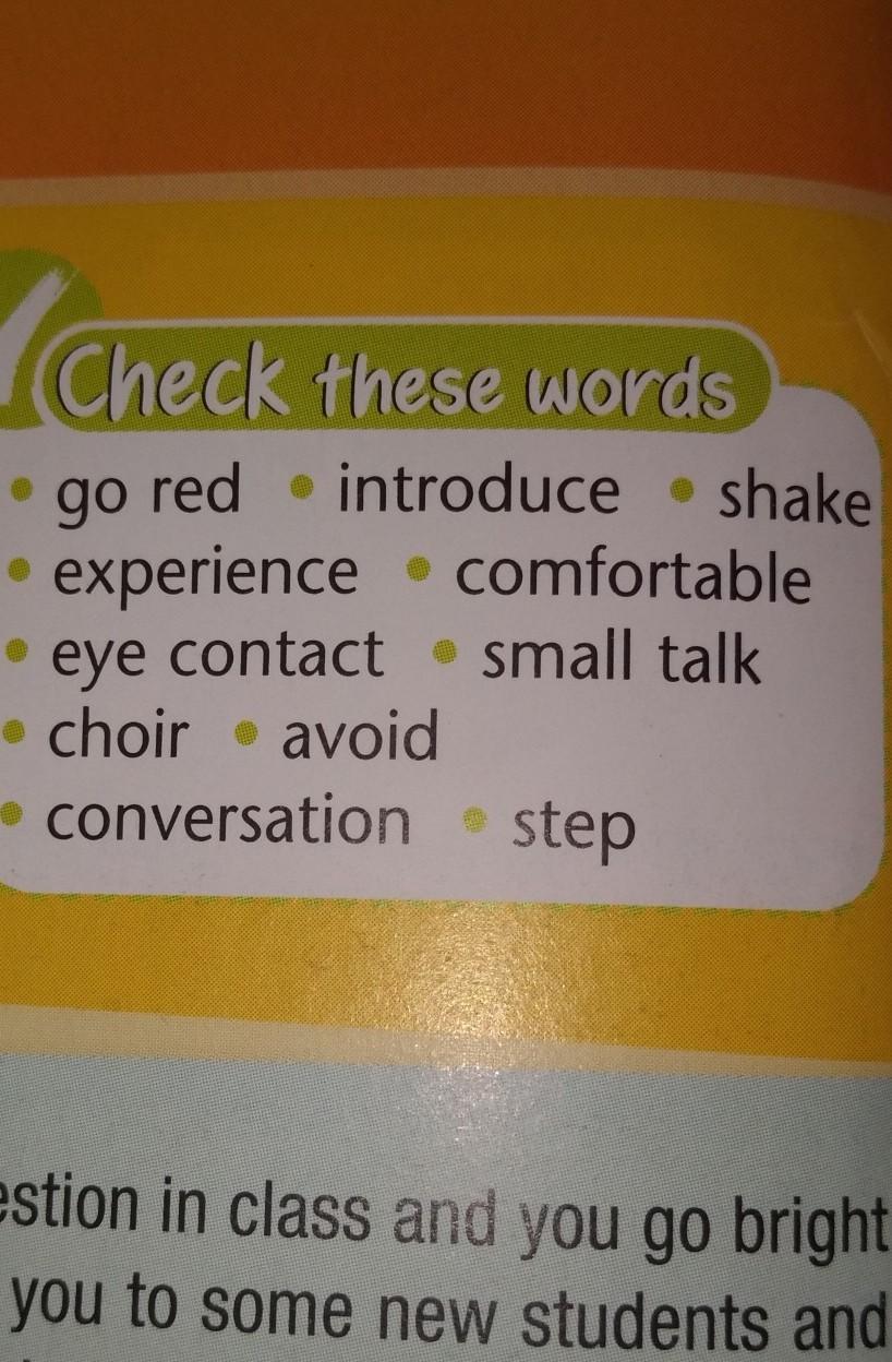 Перейти красный, Представить, Змея, Опыт,Удобные, Глазной контракт,Маленький разговор, Хор, Избежать, Разговор, Шаг.