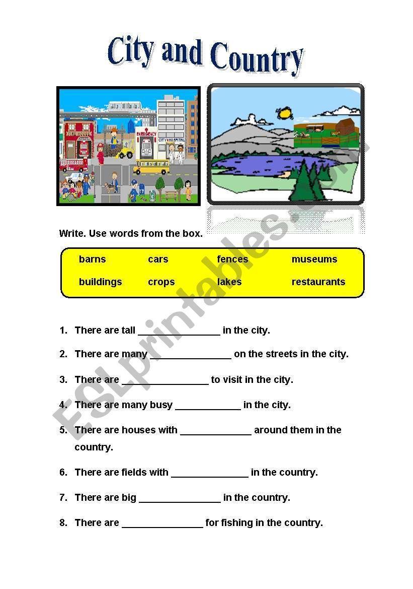 1 buildigs 2cars 3restaurants 4 museums 5fences 6lakes 7crops 8barns