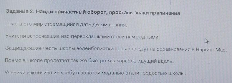 Задание 2. Найди причастный оборот, проставь знаки препинания