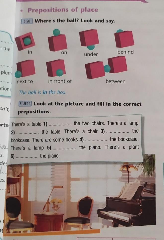 1) between 2) on 3) next to 4) on 5) on 6) behind