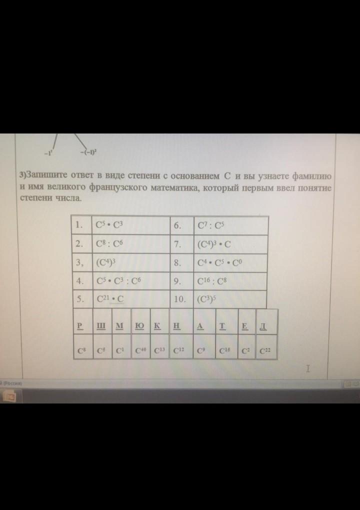 Запишите ответ в виде степени с основанием С и вы узнаете фамилию и имя великого французского математика, который первым ввёл понятие степени числа.