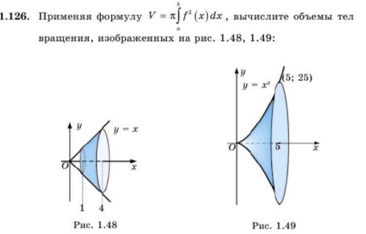 СРОЧНО. вычислите объемы тел вращения, изображённых на рис. 1.48, 1.49. применяя формулу