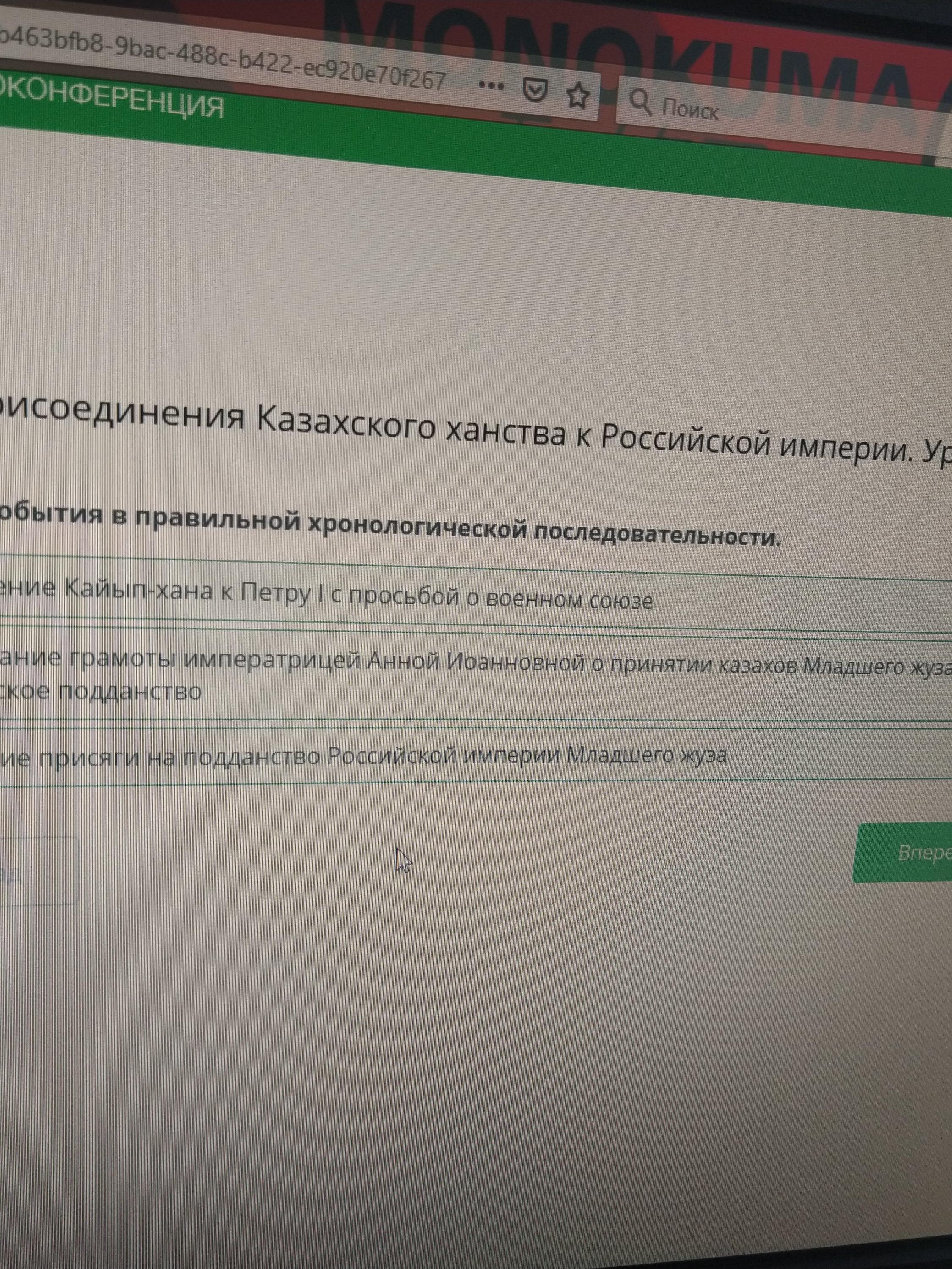 Расположи события в правильной хронологической последовательности.
