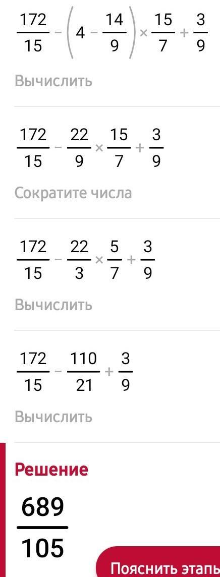11 7/15 - (4 - 1 5/9) : 7/15 + 3/9