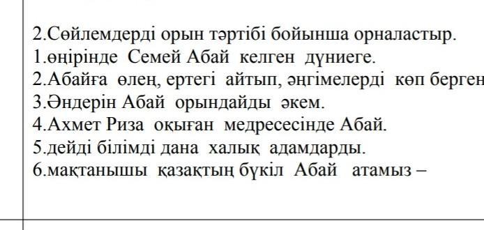Ответ:1.Абай Семей өңірінде дүниеге келген. 2.Абайға өлең,ертегі,әңгімелерді көп айтып берген. 3.Әкем Абай әндерін орындайды.
