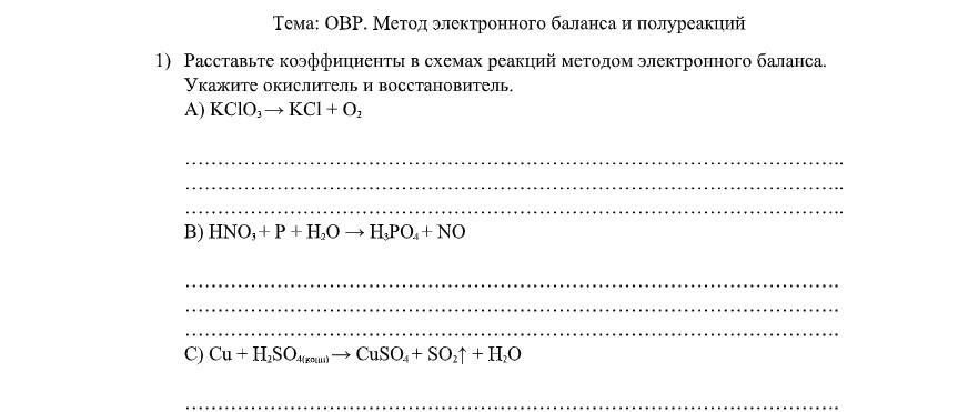 Расставьте коэффициенты в схемах реакций методом электронного баланса.