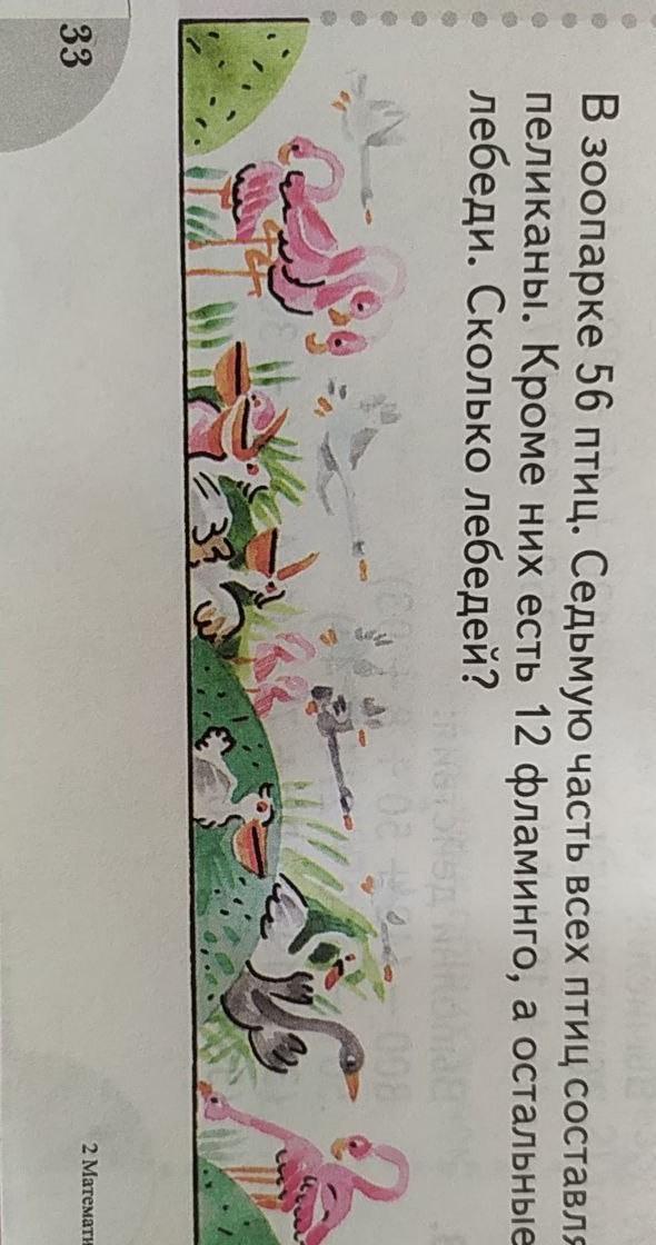 Сначала найдём количество пеликанов. Поделим количество всех птиц на 7 (т.к. пеликаны составляют одну седьмую часть).