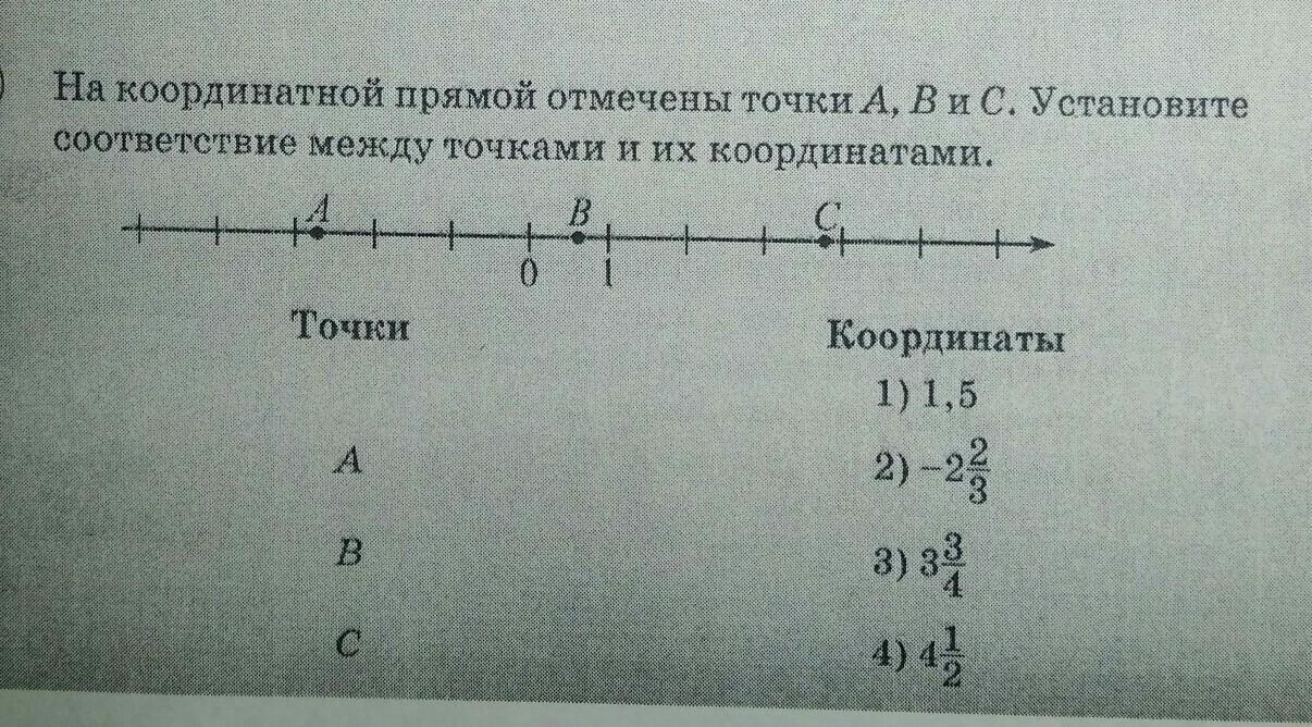 Точка B находится левее единицы, следовательно, ее координаты примерно равны 0,7 или 0 3/4
