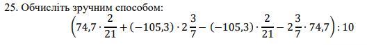((74.7+105.3)(2/21) -(2 3/7)(105.3+74.7))/10=((74.7+105.3)*(2/21- 17/7))/10=