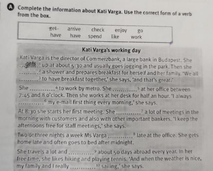 has, arrive, goes, works, check, has, spends, (enjoy)в конце, а 9 кажется like.