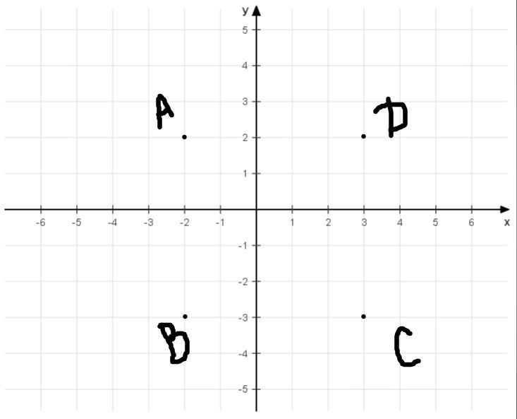 N3. Побудуйте прямокутник АВCD, вершини якого знаходяться в точках : A(-2;2); С(3;-3); D(3;2). Знайдіть : 1) координати точки В; 2) координати точки перетину діагоналей; 3) периметр площу прямокутника.