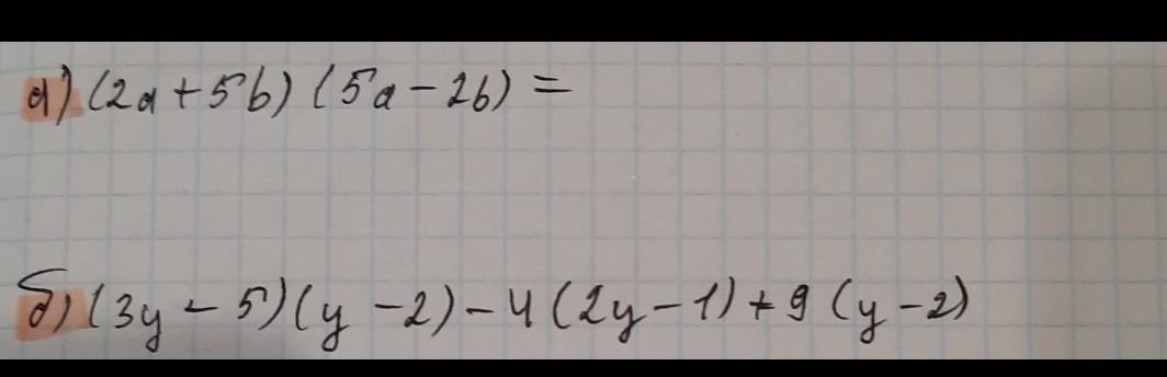 1) (2a+5b)(5a-2b)= 10a²-4ab+25ab-10b²= 10a²+21ab-10b²