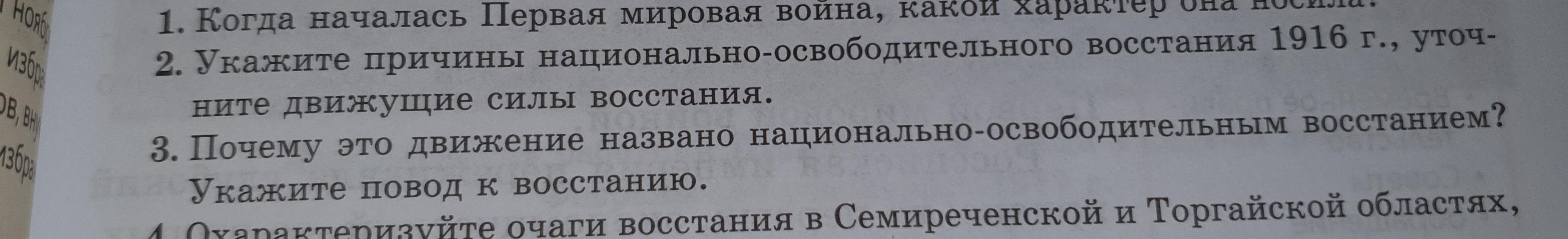Восстание охватило весь Казахстан и переросло в национально-освободительное движение, направленное против военно-колонизаторской и широкомасштабной русификаторской политики царизма и в определенной степени—против феодально-байской верхушки аула. Вместе с тем выступление было направлено против империалистической войны, приведшей к кризису народного хозяйства и крайней степени обнищания народа. В этом оно смыкалось с революционной борьбой рабочего класса и крестьянства России. Главной целью восстания 1916 г. являлось национальное и политическое освобождение, подводящее итог всей предшествующей борьбе казахского народа за свободу и независимость. Основной движущей силой восстания были широкие слои национального крестьянства—шаруа, а также представители нарождавшегося рабочего класса, ремесленники. Участвовали в нем и представители других слоев казахского народа: баи, волостные управители, бии, а также демократическая интеллигенция. В целом национально-освободительное движение 1916 г. в Казахстане было мононациональным, за исключением его южных областей (Семиречья и Сырдарьинской области), где наряду с казахами в восстании участвовали уйгуры, узбеки, киргизы, дунгане и представители некоторых других народов.