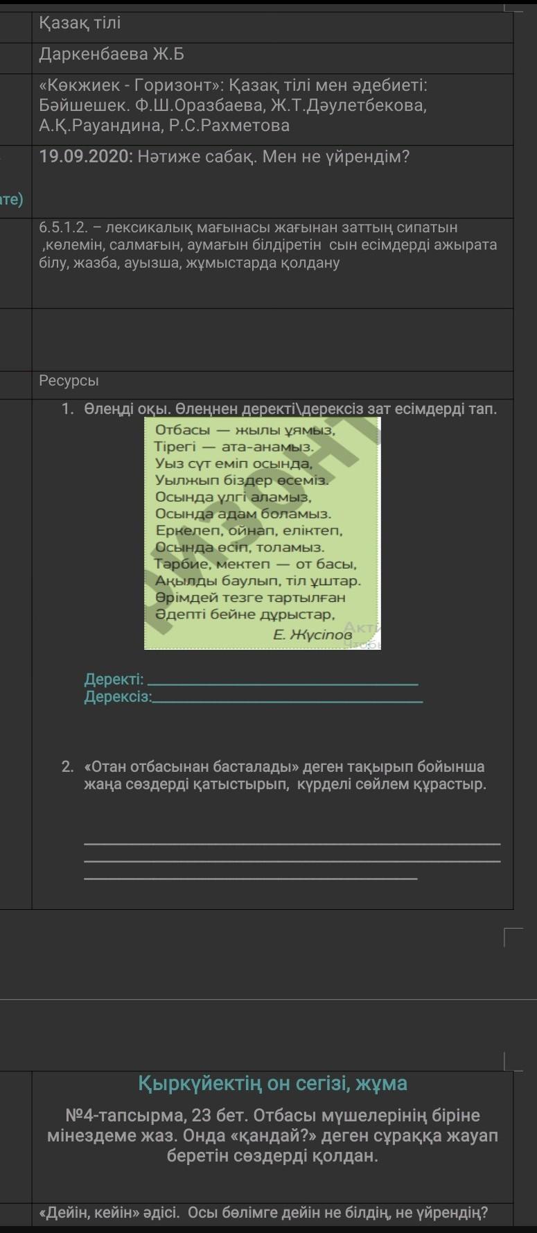 деректі: ата-анамыз,тобасы,адам,мектеп