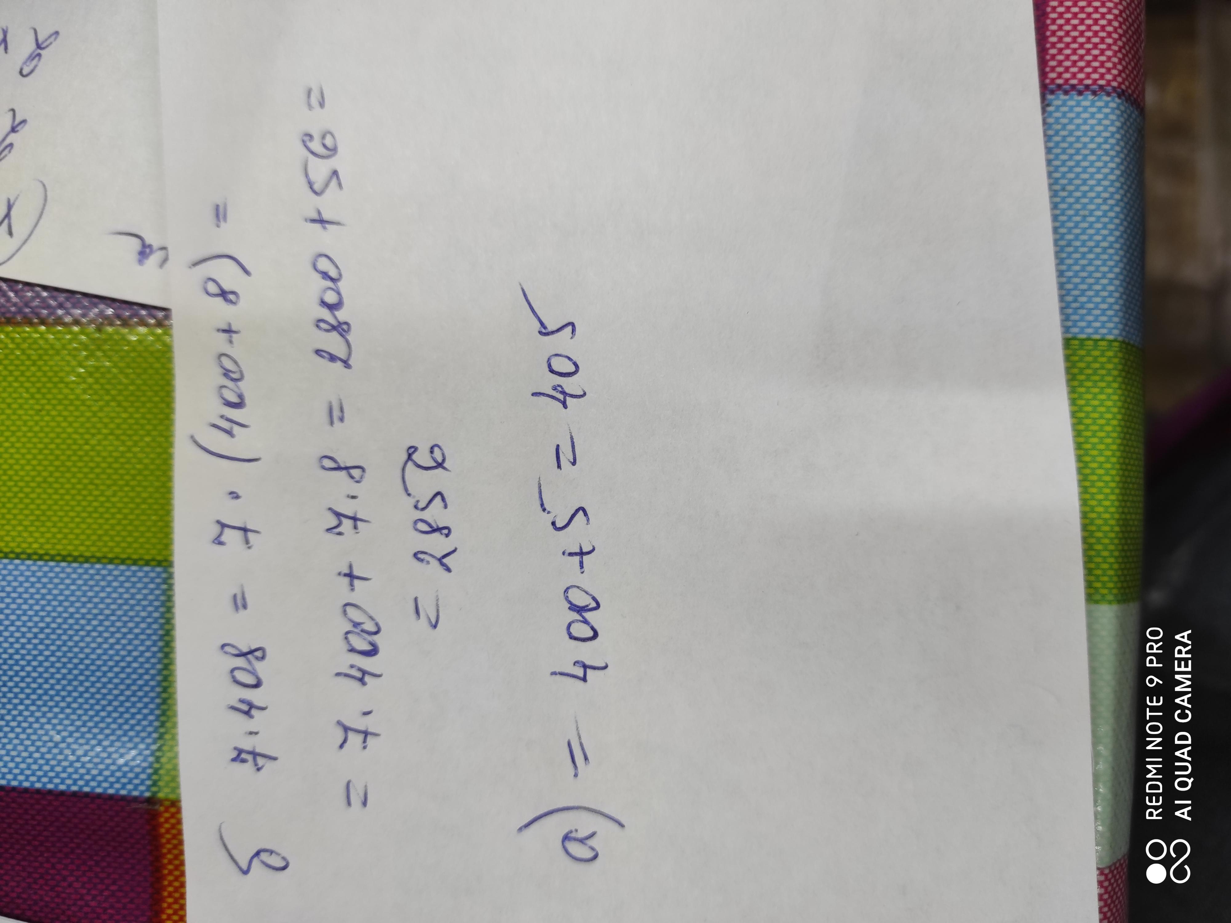Б) 7*408=7*(400+8)=7*400+7*8=2800+56=2856