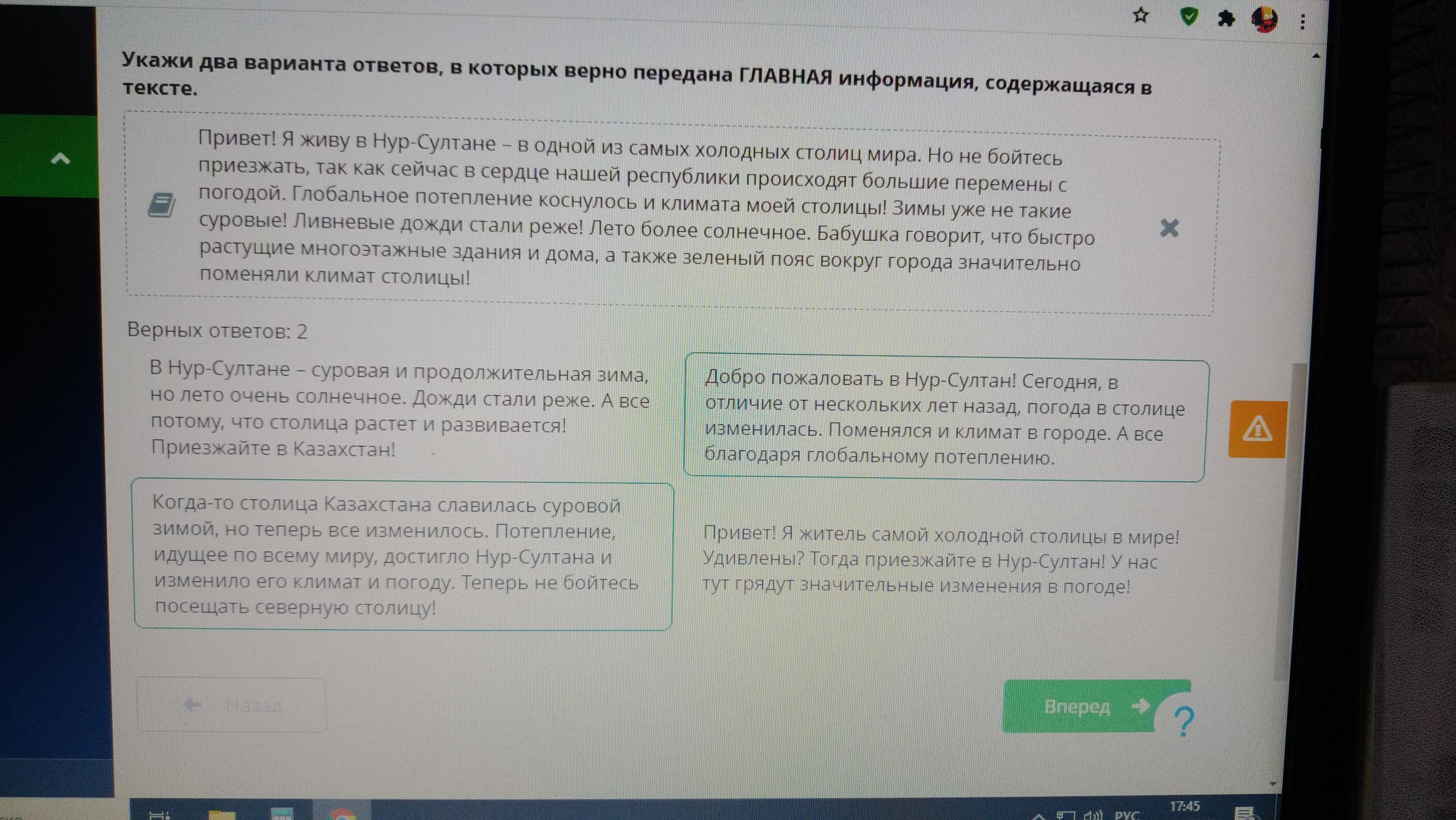 Укажи два варианта ответов, в которых верно передана ГЛАВНАЯ информация, содержащаяся в тексте.