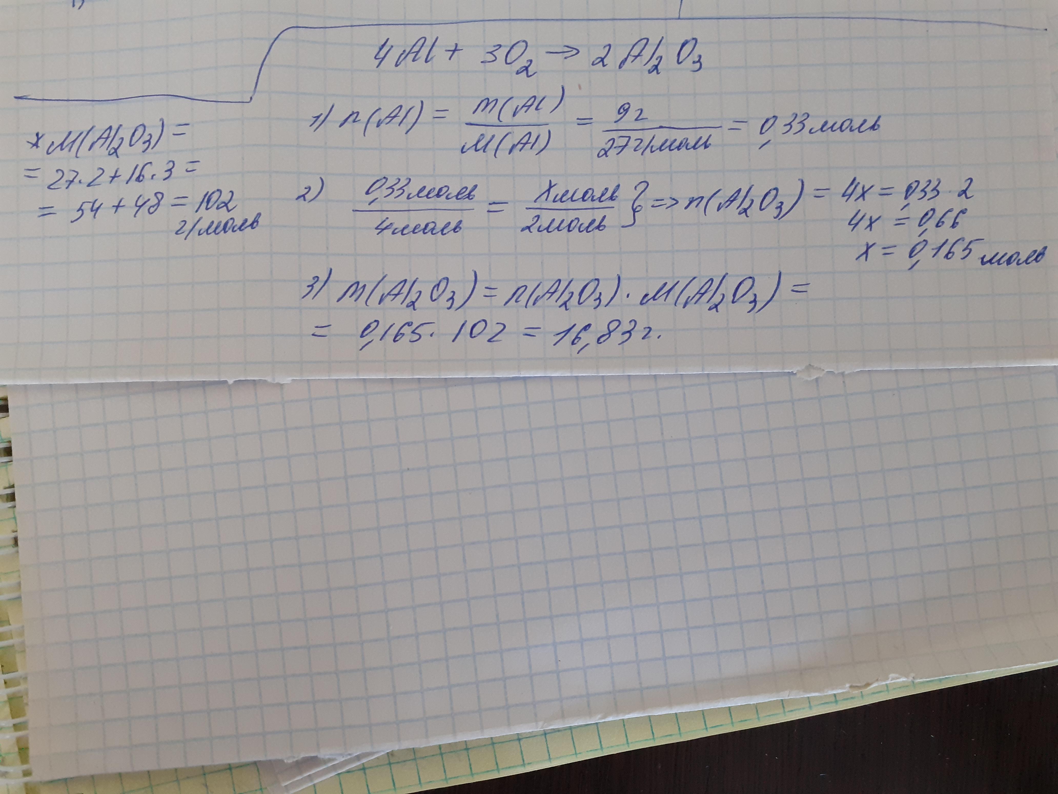 1. Найти массу полученного оксида при горении 9г алюминия