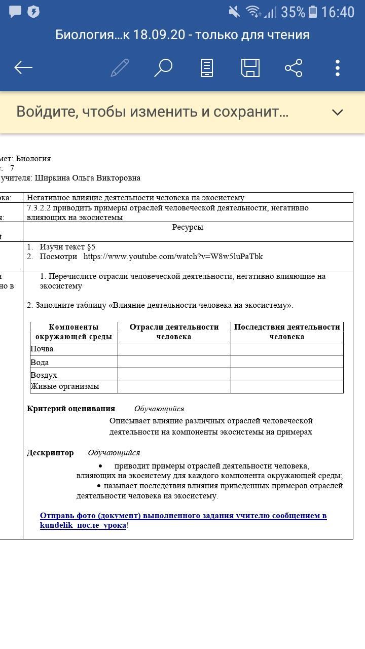 2) Заполните таблицу «Влияние деятельности человека на экосистему».
