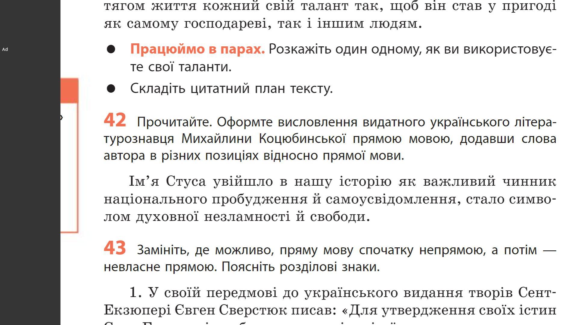 Ответ: Михайло Коцюбинський каже : "Ім'я Стуса увійшло в нашу історію, як важливий чинник національного пробудження й самоусвідомлення,- каже автор і додає,- стало символом духовної незламності й свободи."