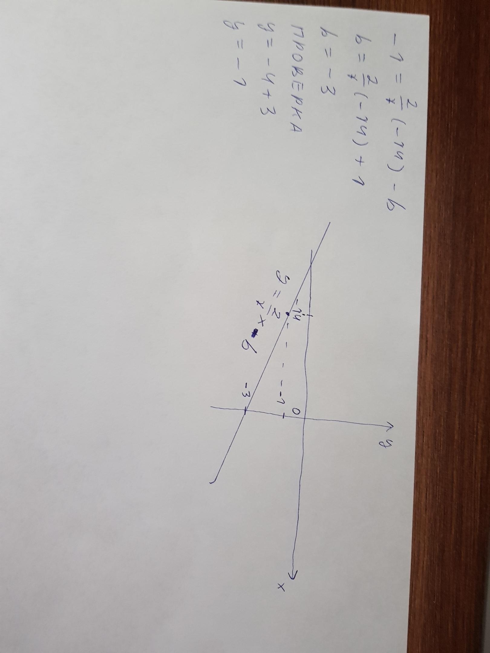 График функции y=2/7x-b проходит через точку с координатами (-14;-1). Найдите значение b.