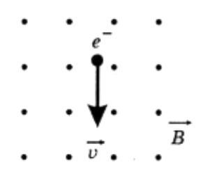Электрон движется в однородном магнитном поле так, как показано на рисунке. По какой траектории будет двигаться частица?