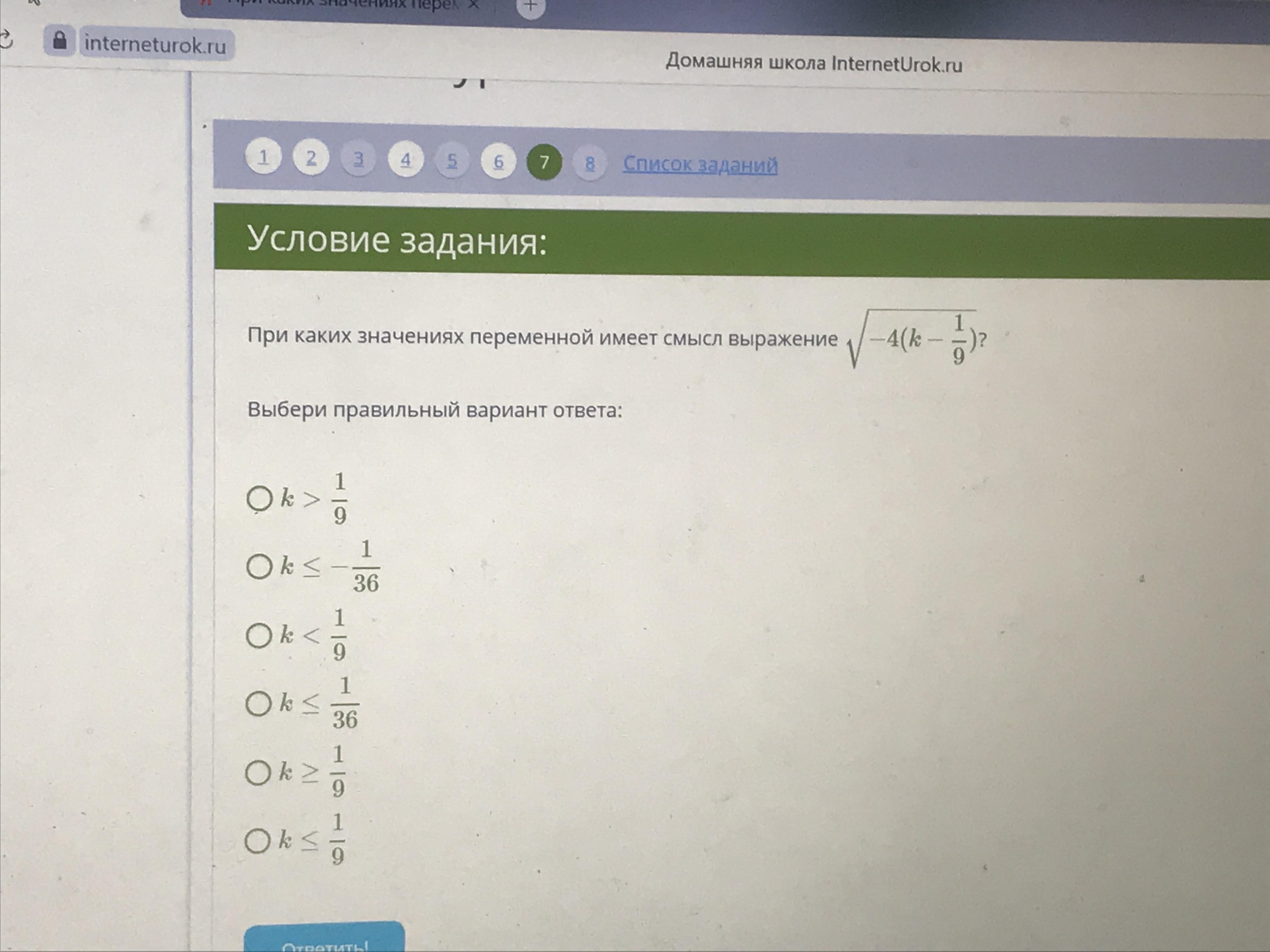 k< или равно 1/9