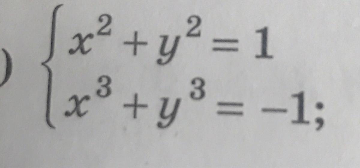 подставим х=0 во второе уравнение, получим у³=-1⇒у=-1