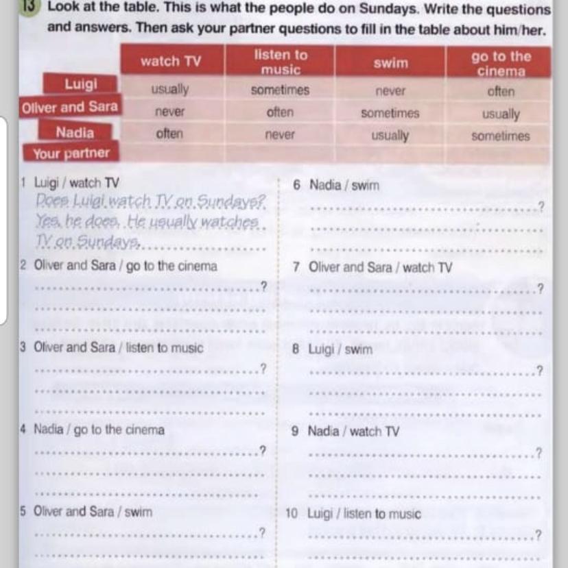 - Do Oliver and Sara swim? Yes, they do. Sometimes they swim on Sundays.