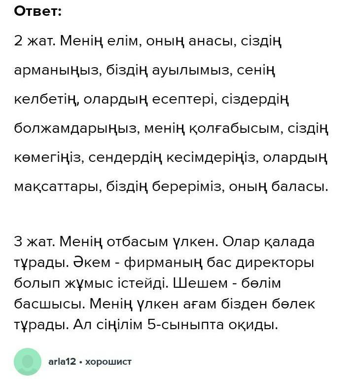 Менің ел..., оның ана..., сіздің арман..., біздің ауыл..., сенің келбет..., олардың есеп..., сіздердің болжамдар..., менің қолғабыс..., сіздің көмег..., сендердің кесімдер..., олардың мақсаттар..., біздің берер..., оның бала....