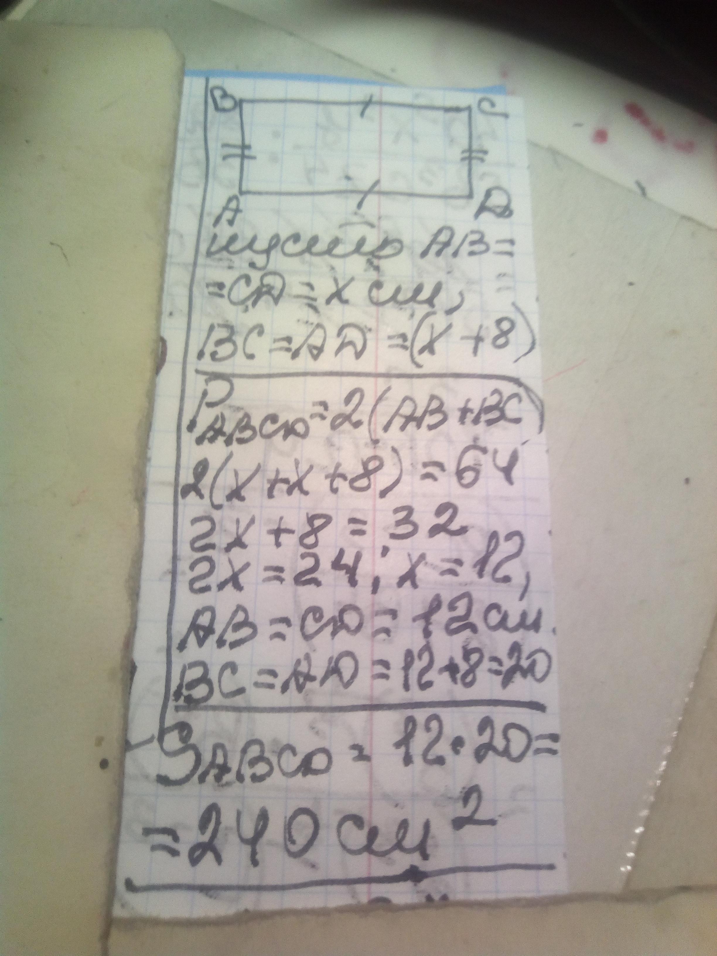 Ширина - ?, на 8 м < чем длина