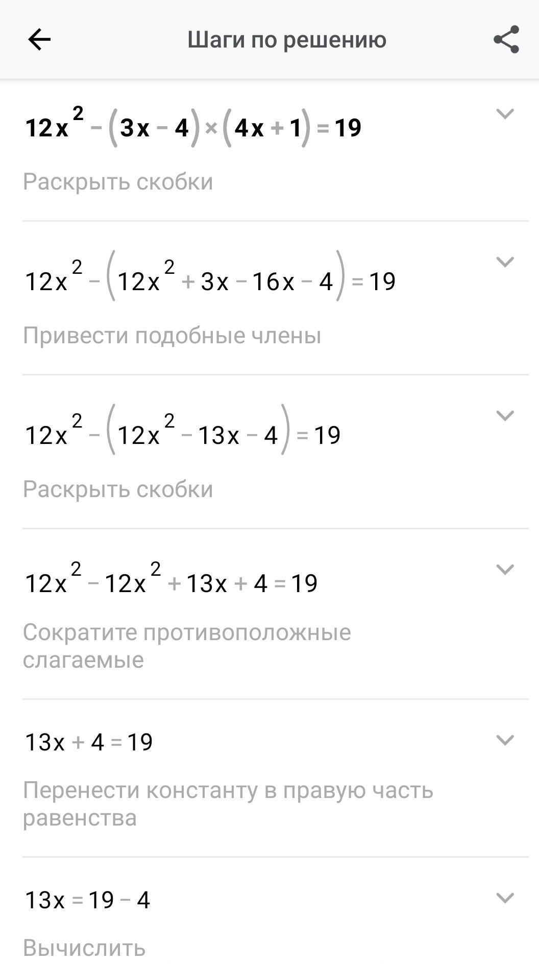 Помогите решить 12х²-(3х-4)(4х+1)=19