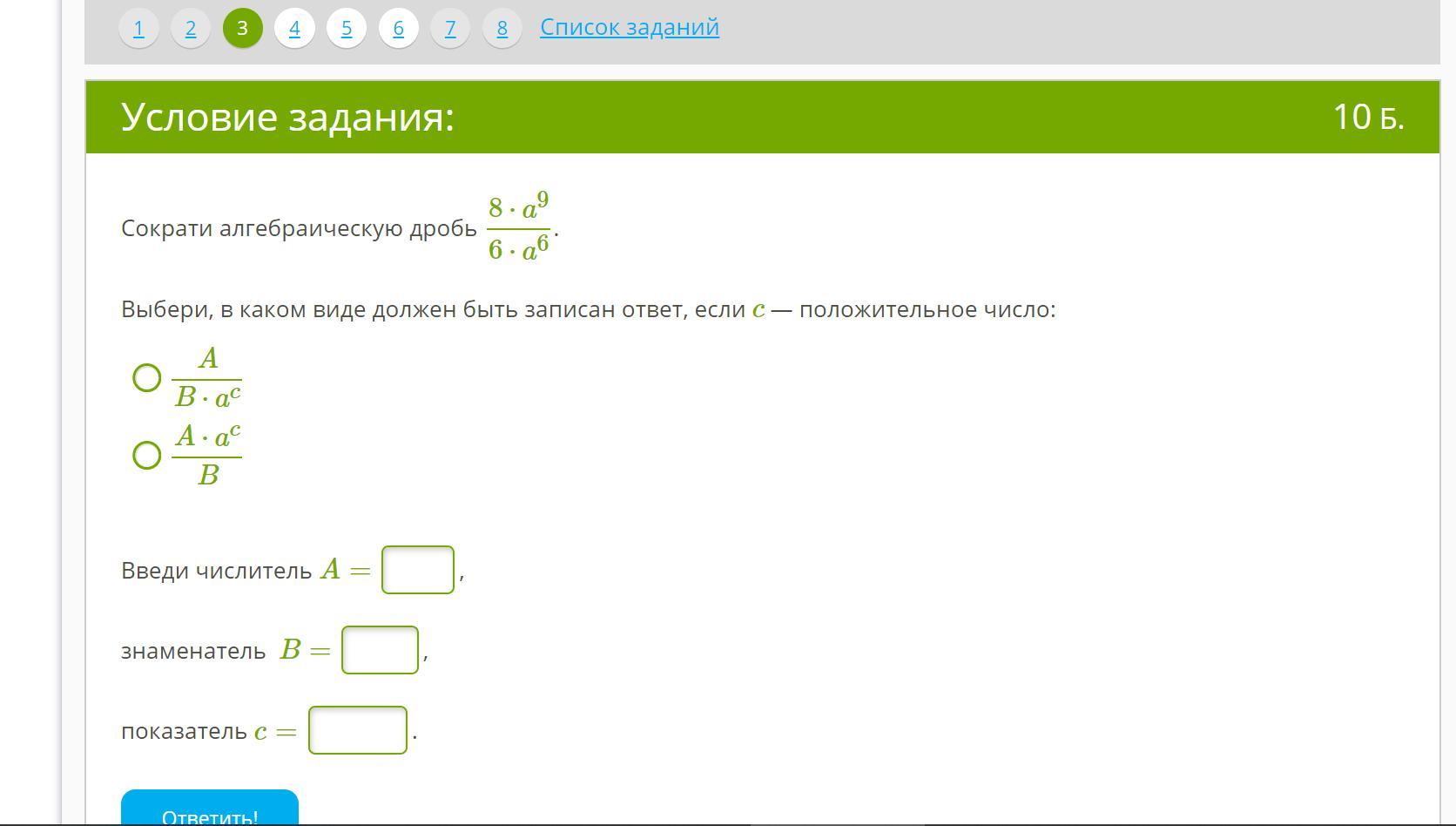 выполним сокращение 8а⁹/(6а⁶)=4а³/3
