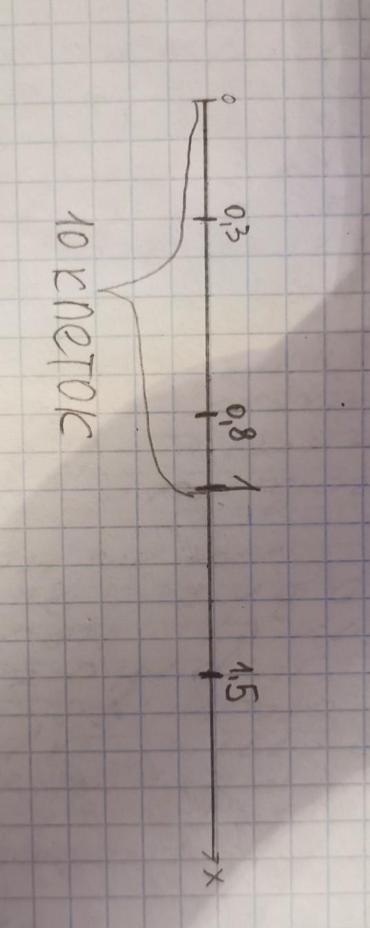 Помогите пожалуйста Начертите числовой луч. За единичный отрезок примите 10 клеток тетради. Отметьте на числовом луче следующие дроби :0,3 ;0,8 ;1,5.