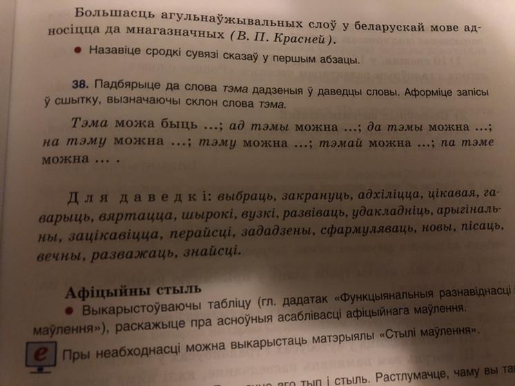 тэма можа быць цiкавай, новай; ад тэмы можна адхiлiцца; да тэмы можна вяртацца; на тэму можна перайсцi; тэму можна выбраць, знайсцi; тэмай можна зацiкавiцца; па тэме можна гаварыць.
