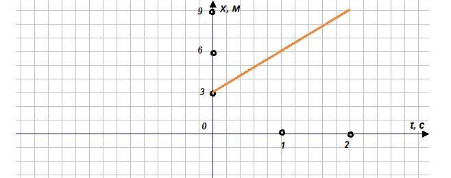 Движение пешехода описывается уравнениями движения x(t)=3+3t. Построить график движения. Для уравнения найти начальную координату, величину проекции скорости на ось х , координату х через 20с.