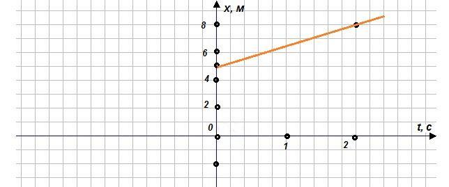 Движение поезда описывается уравнениями движения x(t) =5+ 1,5t. Построить график движения. Для уравнения найти начальную координату, величину проекции скорости на ось х , координату х через 15 сек.