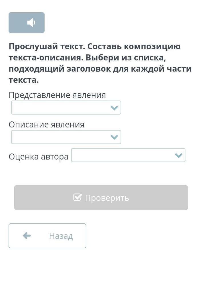 Прослушай текст. Составь композицию текста-описания. Выбери из списка, подходящий заголовок для каждой части текста.