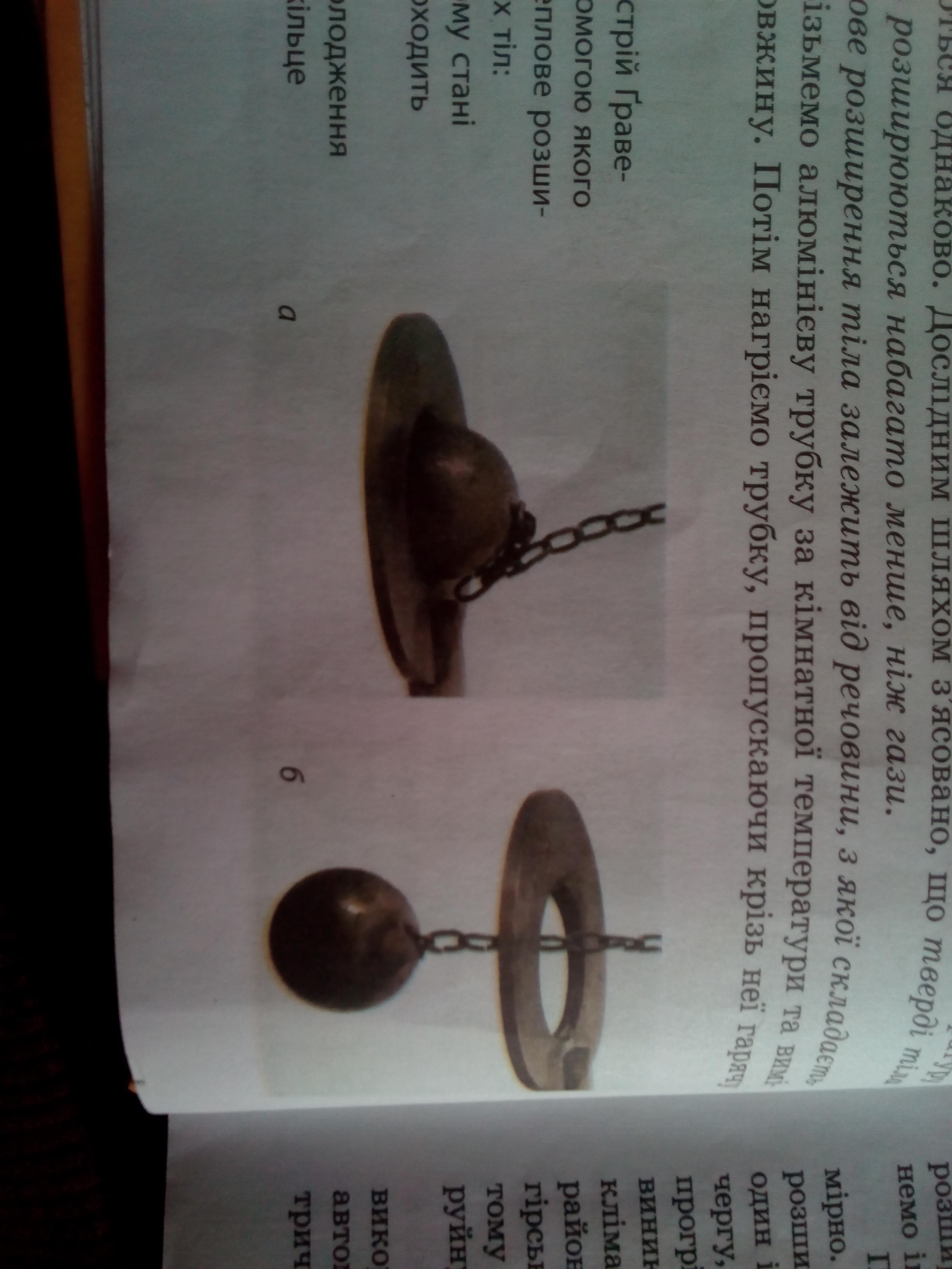 Ответ:При нагріванні чугунної кульки вона не пройде у кільце, тому що розшириться. А при охолодженні- спокійно буде проходити крізь кільце, тому що зменшиться.