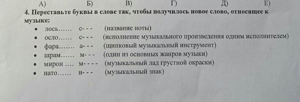 переставьте буквы в слове так , что бы получилось новое слово относящиеся к музыке
