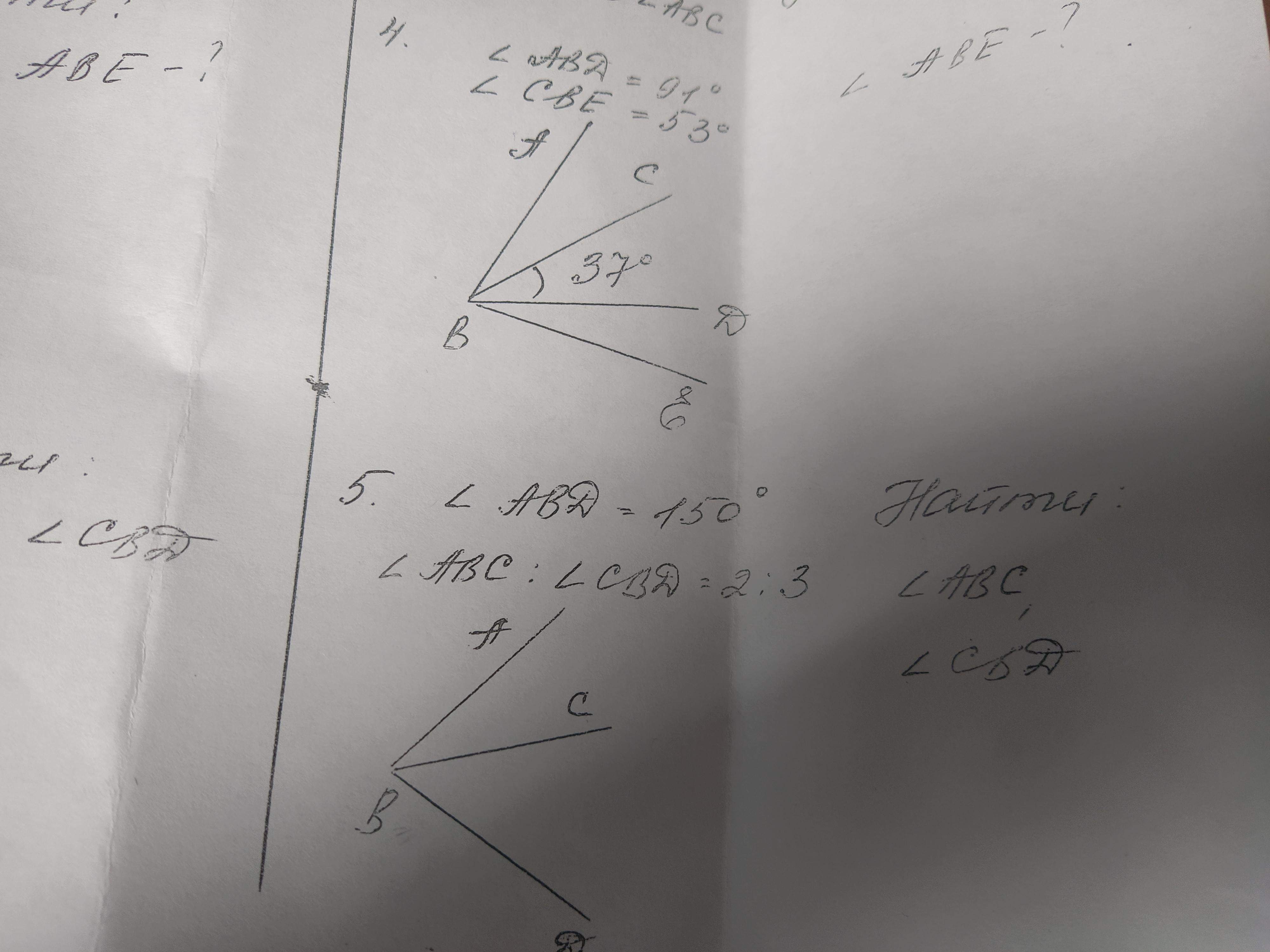 пусть х коэффициент пропорциональности тогда 2Х угол АВС , тогда 3Х угол СВD. Составим и решим уравнение.