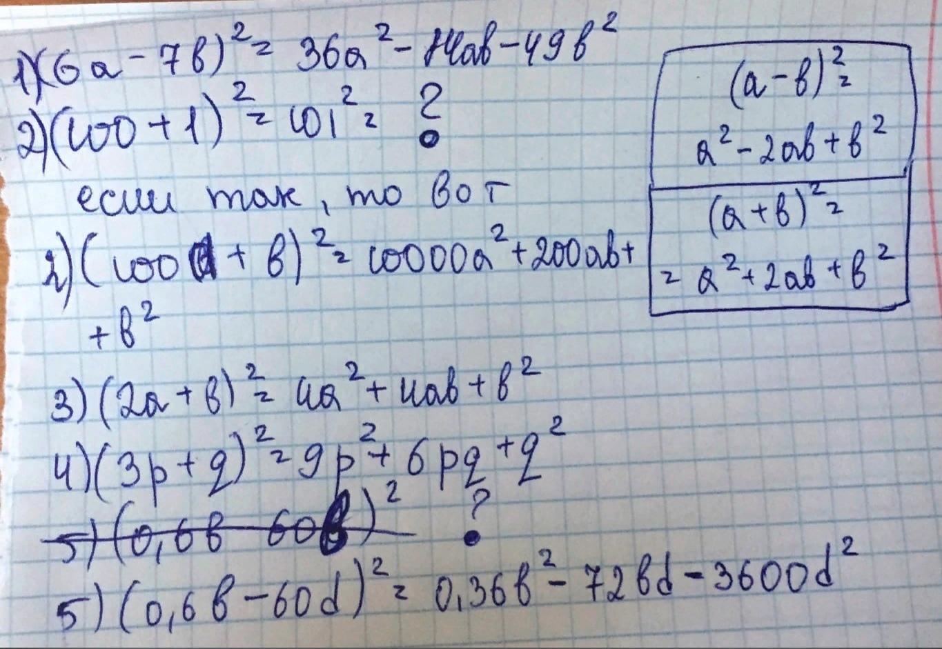 (6a-7b)^2=(6a)^2-2*6a*7b+(7b)^2=36a^2-84ab+49b^2