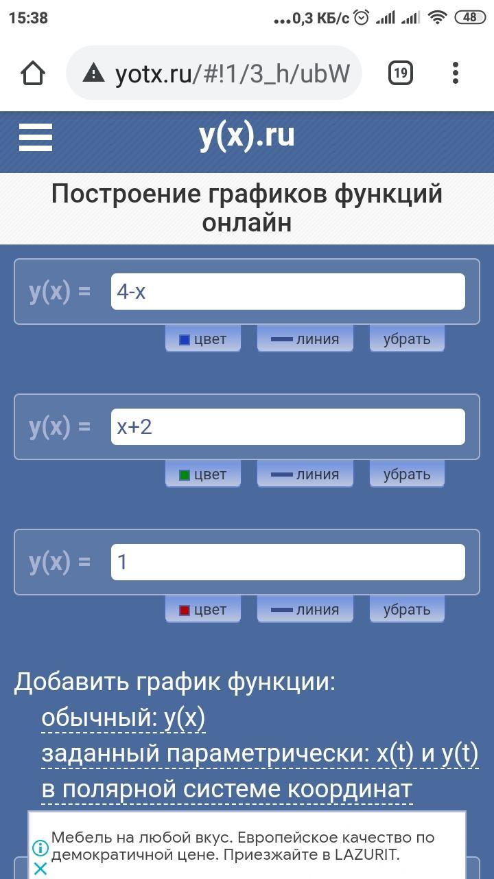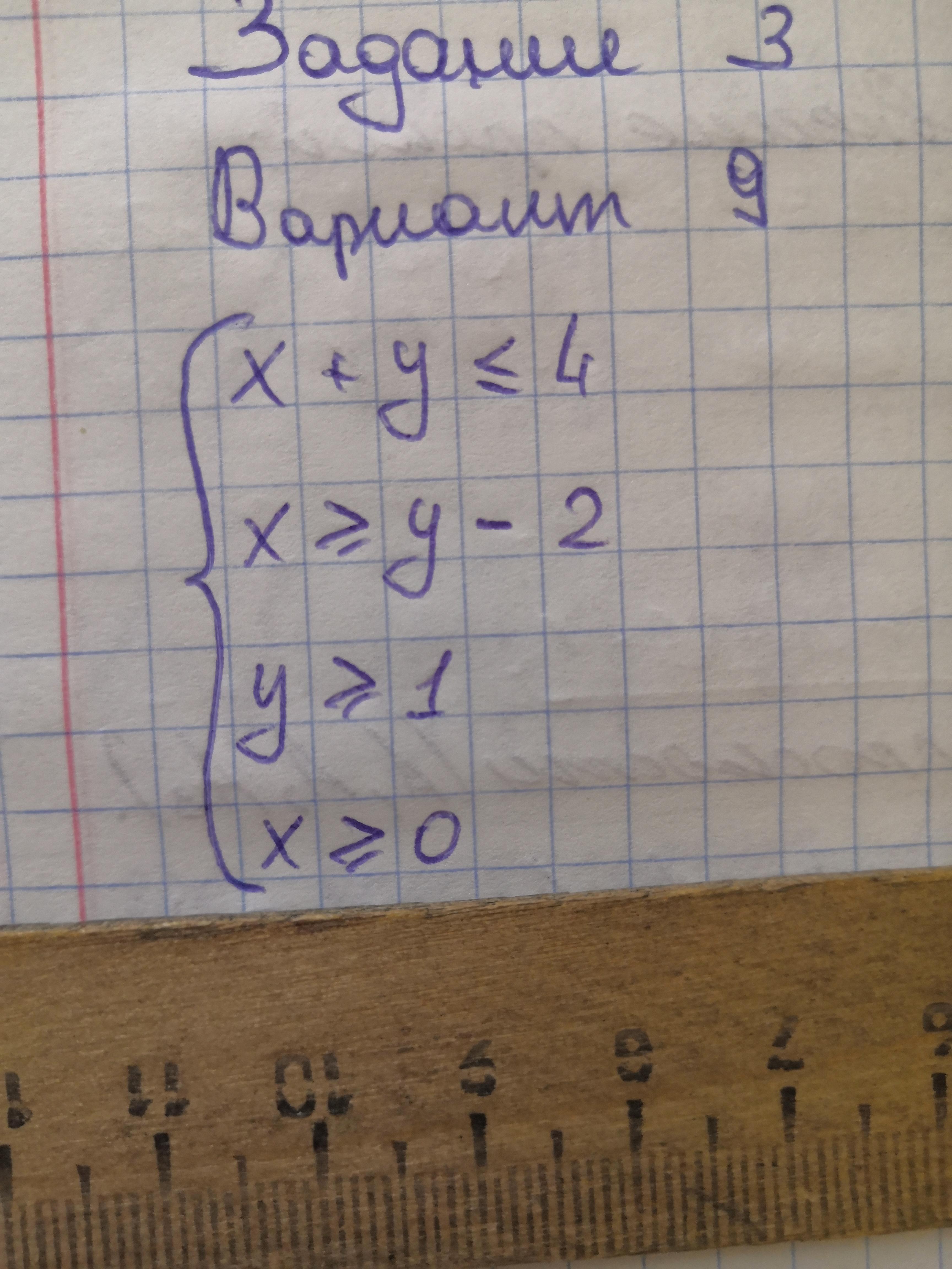 Область находиться в треугольнике, однако нарисовано всего 3 графика, так что следует добавить график х≥0.