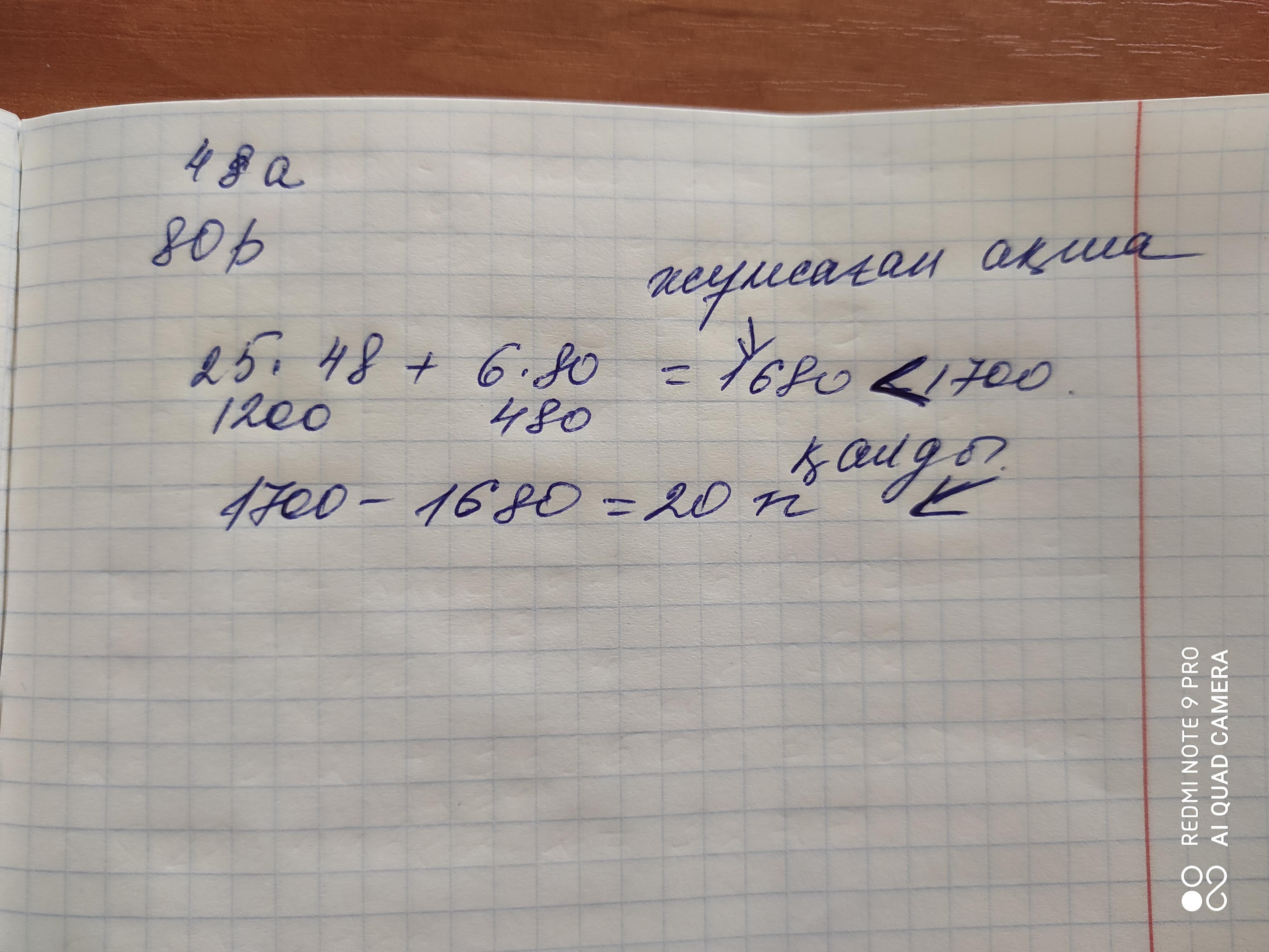 Дәптер саны а, қалам саны b болсын. 25 а + 6:b < 1700 теңсіздігі