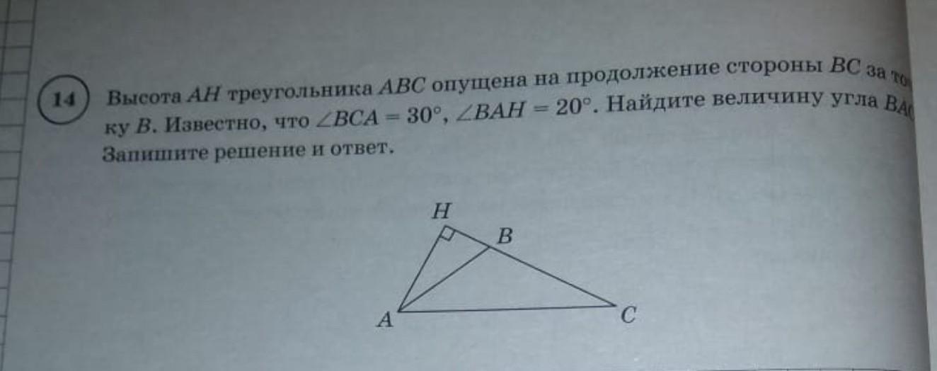 сума прямеугольного треугольника 180 градусов тогда Кут АНВ 90 градусов Кут АСН 30 градусов а Кут ВАС 20 градусов и остаётся